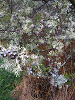 There is now an abundance of Spring flowers everywhere; primroses, violets, wood anemones, wood sorrel, celandine and the blue bells are just beginning to show through. The blackthorn is prolific this year too although in this photo it is hard to distinguish the blossom from the lichen on this old tree. It bodes well for sloes later in the year.