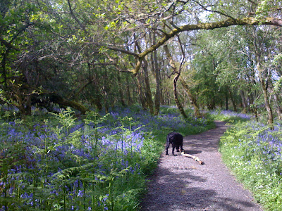 This really is the time to go down to the woods. The bluebells are amazing. They seem to get bluer and bluer as far as the eye can see. The photo doesn't do justice to the intensity of the colour and the contrast with the emerging bracken. I've managed two walks to the viewpoint today and this evening's was so peaceful. It amazes me that I can spend an hour walking on a beautiful evening and not see another soul. Rosie and I have it all to ourselves.