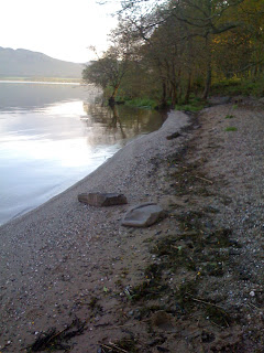The beauty of the loch took my breath away when I reached the view point. There was a mist lingering over the surface of the water and a faint mist in the distance. But the air was so clear an cold and the light so delicate on the hills.