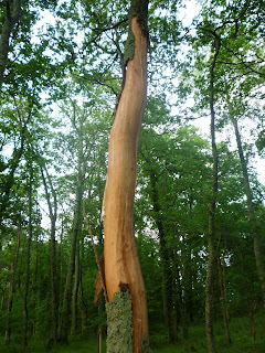 If you've been on the shore path walk this weekend you might have noticed the tree that was hit by lightning in the storm last Thursday. It really is quite dramatic. Sheets of bark have been stripped from the lower trunk of this relatively young oak tree but it appears to be untouched in the higher branches. The exposed trunk is a rich orange tan colour and the force of the strike can be seen in the splits that were made.