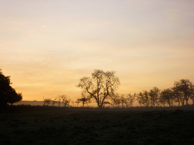 The woods are full of spiders that I've never seen but their presence can be felt by the fine filaments that brush against your face as you walk along the path. I imagine them as minute trapeze artists swinging from tree to tree only have their safety harnesses swept away as I walk through. The cold night had produced a touch of frost and heavy dew so there was clearer evidence of the spiders' activities this morning in the delicate webs,