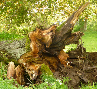 The big news of the past week has been Monday's storm. It was certainly the worst I have known since I have been here and this has been echoed by many locals too. We were without power for nearly 48 hours while fallen cables were being located and restored. The garden was hit hard. A sixty foot oak tree (above) lies across the lawn and an old rowan tree also toppled. Branches are everywhere and clearing up will take quite a time. However, there are plenty of volunteers just dying to get out their chainsaws. The winds are still strong and it may be sometime before I can get a bonfire lit to clear away some of the wood that is not much use for firewood or kindling. At least we will be warm for the next couple of winters. There's a couple of tons of good oak wood for the fires.